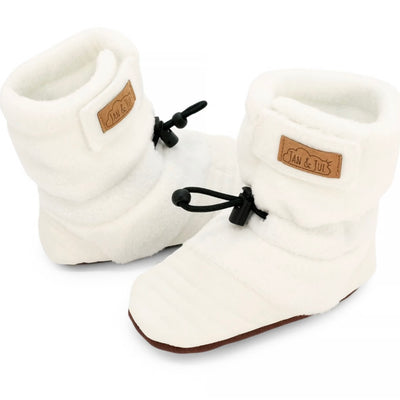 Huddy Buddies are made from a very durable and washable faux suede with a luxurious fur lining. The yarn is a 20% wool blend that creates soft, warm comfort. These slippers will STAY PUT and are very easy to put on. The soft soles are weather-resistant and great for indoor and outdoor use, though the crochet portion of the slipper is not very fond of puddles!